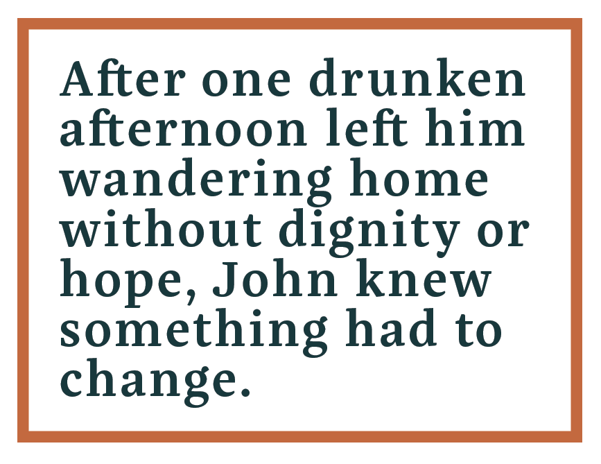 Over time, this very cycle that he resisted began to pull him in. Alcohol became his escape, leading him down the same destructive path. After one drunken afternoon left him wandering home without dignity or hope, John knew something had to change.